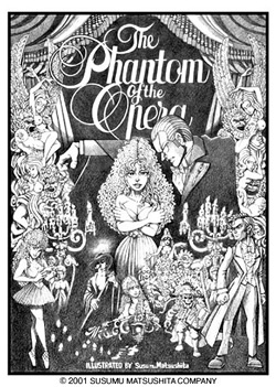 昔から観ていたんだけど、アンドリュー・ロイド・ウェーバーの音楽と舞台の美術とコスチュームに惹かれて。まぁ、ストーリーはそんなに別に好きだった訳じゃないけれど、どっちかと言うと自分は怪奇的なのはちょこっと好きなわけ。そういうストーリーだけども、やっぱり音楽と舞台美術&衣装かなぁ。それがすごく良くて、何度観ても飽きずに見られる。 ハー・マジェスティーズ・シアターで観て、その日のうちから描き始めた。ホントのことを言っちゃうとさ〜、メグ・ジリー役の女の子(ヘイリー・ドリスコル)がすっげー可愛くてきれいだったんだよ、それであぁ、いいな〜と思って何回も通って、それで観ているうちに「あぁ良いじゃん、この劇」ってね。って、おい嘘だよ、これは。 とにかく、現在はラフの状態ですが、これから色も入れて自分の作品として描き上げるつもりです!(松下談) |