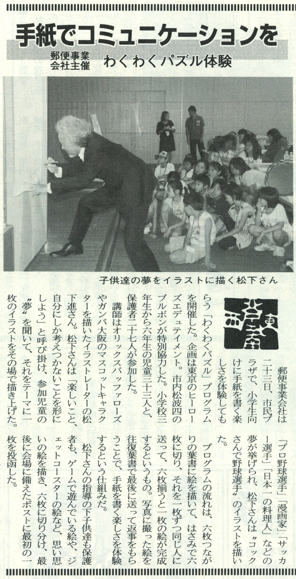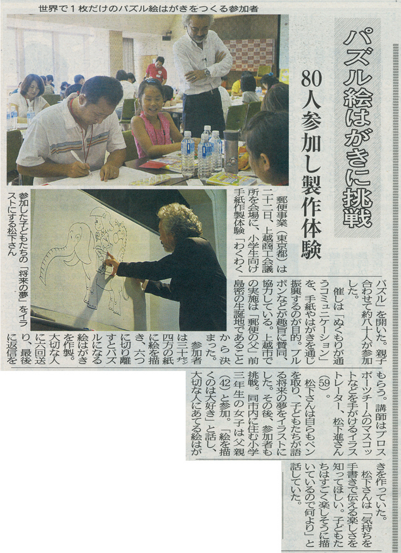 参加者の皆さんは、松下のアドバイスのもと、本当に素晴らしい思い思いのイラストを描き、パズル絵はがきを完成させました。そして最後に、会場の特設ポストに最初の一枚を投函。