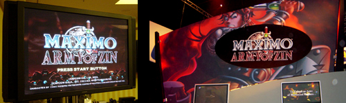<写真右>4月14日〜16日に、米国ロスアンジェルスのコンベンションセンターで行われたE3 Expo.例年通り大盛況の中執り行なわれたが、中でもその存在感を出していたCAPCOM社。ブース内では巨大なMAXIMO看板が一際目立っていた。 |