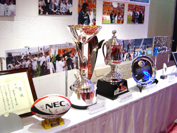 日本ラグビー初の全国リーグ「トップリーグ」が2003年9月に開幕し、全12チームが、総当りのリーグ戦とそれに続くトップリーグの8強が社会人日本一の座を賭けて争うトーナメント方式のカップ戦がマイクロソフトカップ。松下進がキャラクター&チームロゴを提供している我らがNECグリーンロケッツは2004年2月2日に国立競技場で行なわれた決勝戦にて初代チャンピオンの栄冠を勝ち取った。